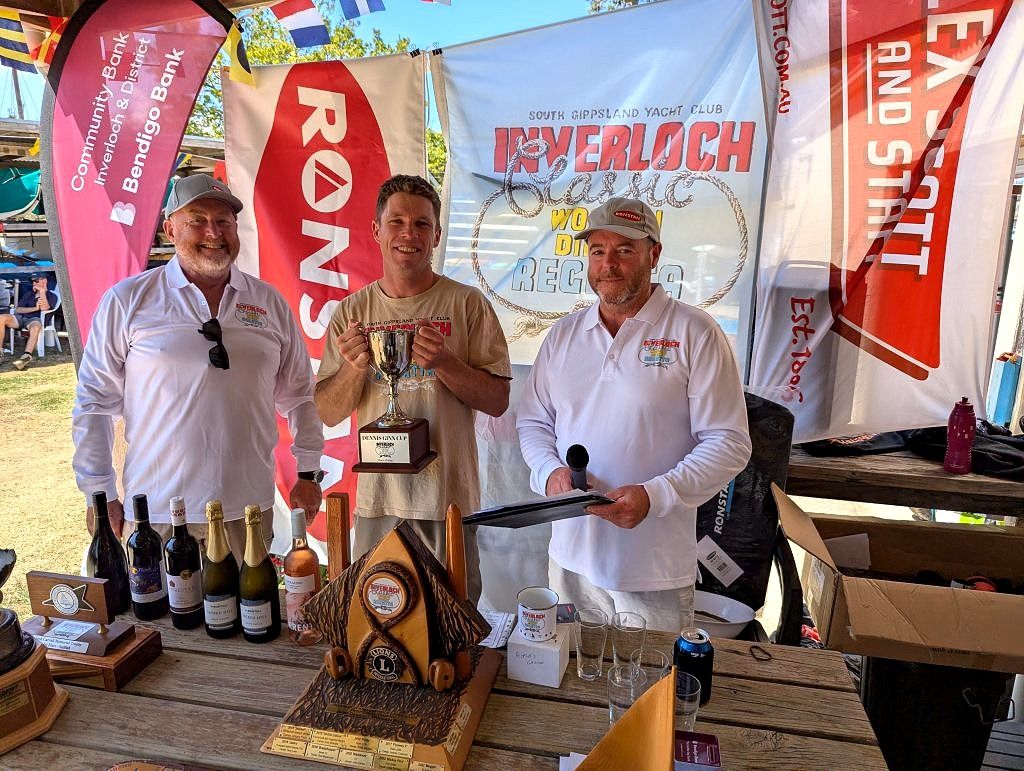 That was the Saturday racing done and dusted, it was time to clean up and get ready for the Regatta Dinner, with the pre-dinner entertainment provided by the Wonthaggi Citizens Band. At dinner good food and good company was augmented with door and raffle prizes and there were even quiz prizes. As 2026 marks the 70th Anniversary of the Australian Sailfish, Greg Barwick and Chris Cleary gave a brief talk about the history of the class and how the Sailfish came about, designed as it was by two bayside mates when they were sick of the hassle of finding regular crews.